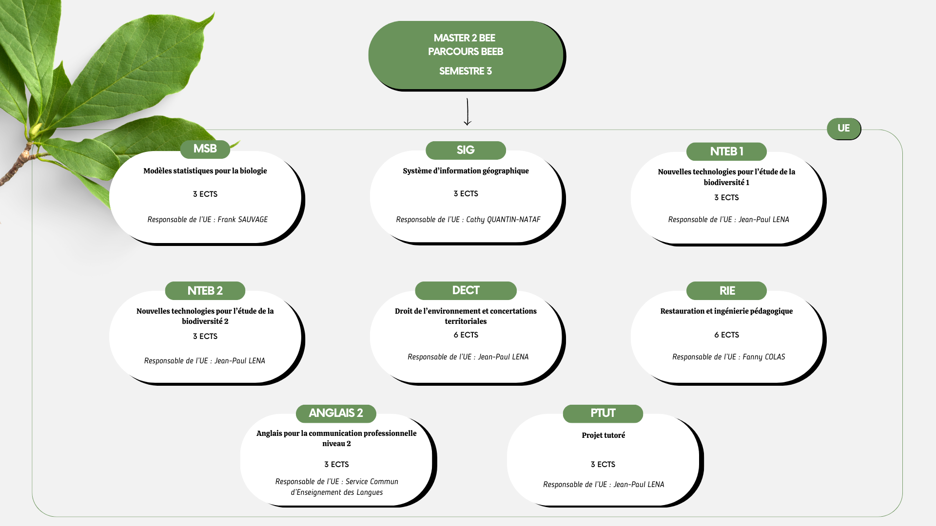 Cette UE, majoritairement magistrale, vise à décrire l’organisation institutionnelle, les politiques ainsi que les outils de préservation de la biodiversité et des espaces naturels à différentes échelles spatiales.